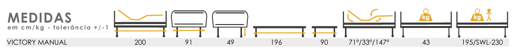 - Articulação manual das costas e pernas, por 2 manivelas retráteis em aço de alta resistência;