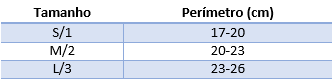 Tamanhos e equivalências em centímetros: