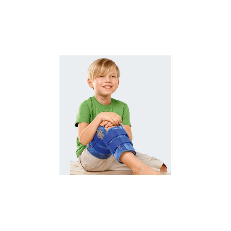 Tala universal para o joelho com limite de flexão/extensão e opção de imobilização, pertencente à linha pediátrica da Medi Bayreuth.