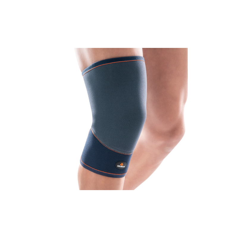 Joelheira em neopreno com rótula fechada e longitude de 27 cm.