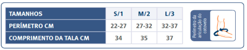 - Ajustável através de duas tiras de veludo com fecho de velcro, com uma abertura para situações em que o paciente necessite de usar um dispositivo periférico de acesso venoso e ao mesmo tempo usar o imobilizador;