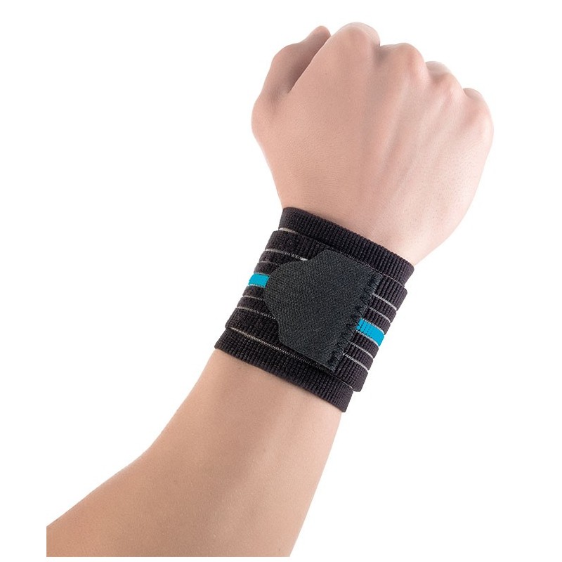 Pulso elástico com banda para suporte e proteção nas atividades desportivas e laborais.