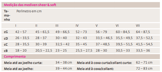 - Devido à espessura do material, ao ajuste e às características do produto, recomendamos a mediven sheer & soft para: