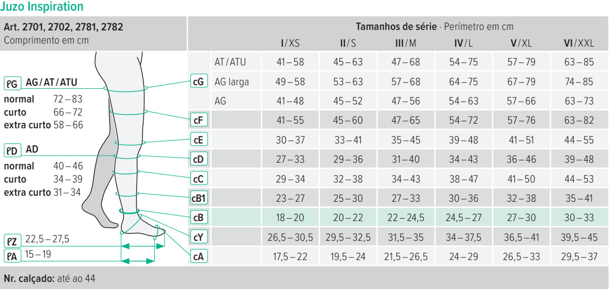 A leve e fina Juzo Inspiration combina uma eficácia total com um aspeto discreto. Com pé fechado (modelo standard) e uma compressão de 23 a 32 mmHg.
