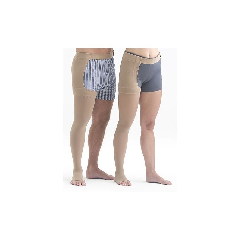 Mediven Plus, em malha circular, é a meia de compressão experimentada e testada para ela e para ele. É agradável para a pele, durável e opaca e tem a biqueira aberta para estilos standard. O modelo meia até à coxa com cinto (AGT), direito ou esquerdo, pode ser curto ou de altura normal. A compressão é classe 1 (18 a 21 mmHg).